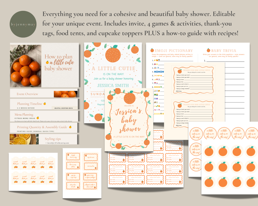 After downloading your Little Cutie baby shower printables: